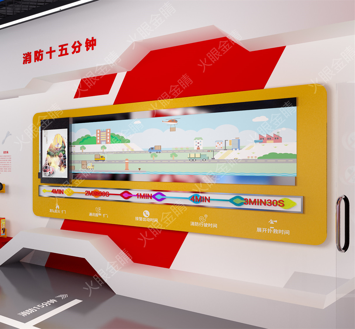 消防15分鐘滑軌版是一套3D動畫演示系統(tǒng)。根據(jù)有關(guān)部門規(guī)定,我國確認為十五分鐘消防,視頻以分段和完整播放的形式,演示了15分鐘消防出動的流程:發(fā)現(xiàn)起火4 分鐘,報警2分30秒,接警出動1分鐘,消防車行車道火場4分鐘,戰(zhàn)斗展開至出水撲救 3分30秒。用戶通過觀看每個時間節(jié)點的動畫演示,學(xué)習如何實現(xiàn)火場自救、有效報警、正確接警等應(yīng)對方法。