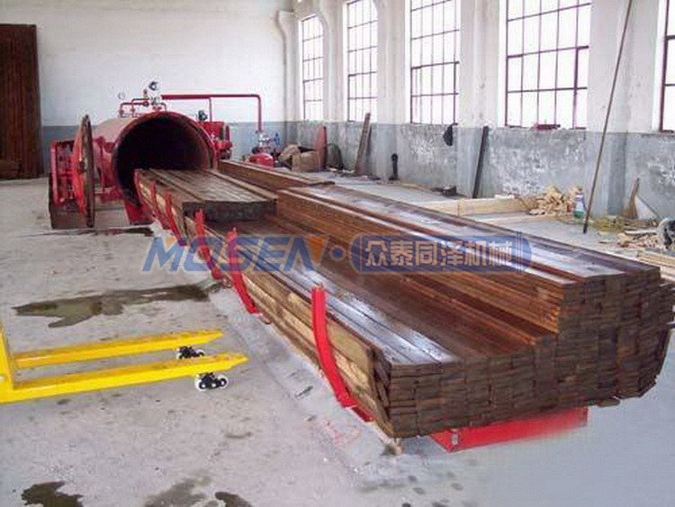 3、加入藥劑劑:在保持真空的情況下通過閥門加入木材處理劑,以確保相同情況的空氣被截留在木材細(xì)胞中。木材藥劑一般有,木材防腐劑、木材染色劑、木材阻燃劑等,根據(jù)不同產(chǎn)品要求添加不同藥劑。