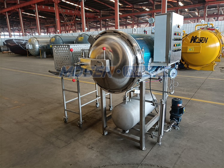 殺菌鍋設(shè)備主要用于肉制品、水果罐頭、奶制品、豆制品、農(nóng)副產(chǎn)品、飲料制品、蛋制品、水產(chǎn)品、八寶粥、調(diào)味品、食用菌、寵物食品、湯和熟食以及果蔬等食品的殺菌。殺菌鍋由鍋體、鍋蓋、開(kāi)啟裝置、鎖緊鍥塊、安全聯(lián)鎖裝置、軌道、殺菌盤(pán)、蒸汽噴管及若干管口、保溫層、熱水罐等組成。
