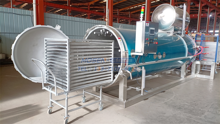 殺菌鍋設(shè)備主要用于肉制品、水果罐頭、奶制品、豆制品、農(nóng)副產(chǎn)品、飲料制品、蛋制品、水產(chǎn)品、八寶粥、調(diào)味品、食用菌、寵物食品、湯和熟食以及果蔬等食品的殺菌。殺菌鍋由鍋體、鍋蓋、開(kāi)啟裝置、鎖緊鍥塊、安全聯(lián)鎖裝置、軌道、殺菌盤、蒸汽噴管及若干管口、保溫層、熱水罐等組成。